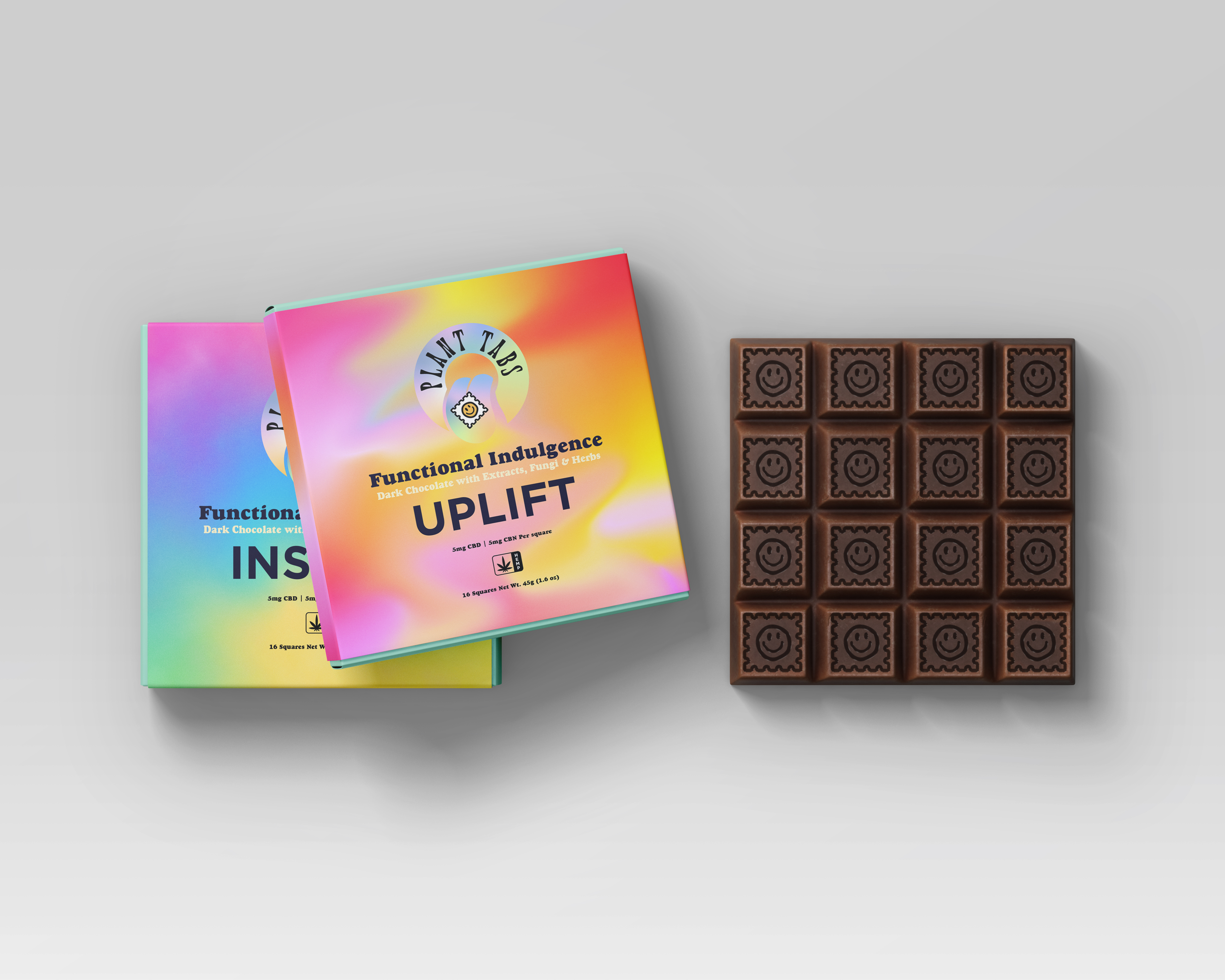 Logo design and package design for CBD chocolate bars printed on compostable hemp fiber paper.